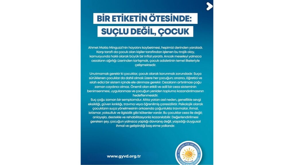 Ahmet Matia Minguzzi’nin hayatını kaybetmesi, hepimizi derinden yaraladı. Karşı tarafı da çocuk olan kişiler tarafından işlenen bu trajik olay, kamuoyunda